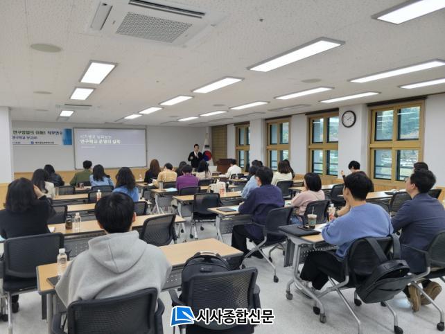 ¿¬¼ö¿¡ Âü¿©ÇÑ ÇÑ ±³¿ø´Â ¡°¿¬±¸Çб³ ¿î¿µ Àü¹Ý¿¡ ´ëÇÏ¿© ½ÇÁ¦ È帧À» ÀÌÇØÇÏ°í ¿¬±¸Çб³ º¸°í¼¸¦ »ìÆìº¸¸é¼ ¿¬±¸º¸°í¼ ÀÛ¼º ü°è¿Í °¢ ³»¿ëÀ» ÀÛ¼ºÇÒ ¶§ À¯ÀÇÇÒ Á¡¿¡ ´ëÇØ Àß ¾Ë°Ô µÇ¾ú´Ù. ƯÈ÷, ¿¬±¸ °á°úÀÇ Åë°èÀû À¯ÀǼº°ú ½Å·Ú ±¸°£À» ÅëÇØ ¿¬±¸ °á°ú¸¦ ÇØ¼®Çϰí Àǹ̸¦ µµÃâÇÒ ¼ö ÀÖ´Â ¿ª·®À» ±â¸¦ ¼ö ÀÖ¾ú´ø À¯ÀÍÇÑ ½Ã°£À̾ú´Ù¡±¶ó°í ¸»Çß´Ù.