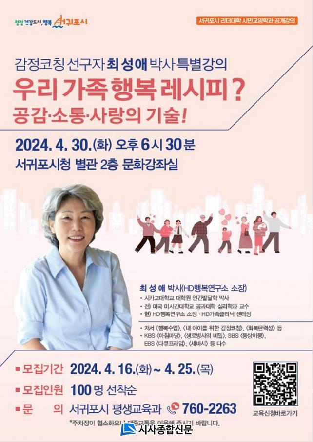 À̹ø °ø°³°ÀÇ´Â 5¿ù °¡Á¤ÀÇ ´ÞÀ» ¸ÂÀÌÇÏ¿© °¨Á¤ÄÚĪ ¼±±¸ÀÚ ÃÖ¼º¾Ö ¹Ú»ç(HDÇູ¿¬±¸¼Ò ¼ÒÀå)¸¦ ÃÊû, ¡¸¿ì¸® °¡Á· Çູ ·¹½ÃÇÇ? °ø°¨¡¤¼ÒÅ롤»ç¶ûÀÇ ±â¼ú!¡¹À̶õ ÁÖÁ¦·Î ÁøÇàµÉ ¿¹Á¤ÀÌ´Ù.
