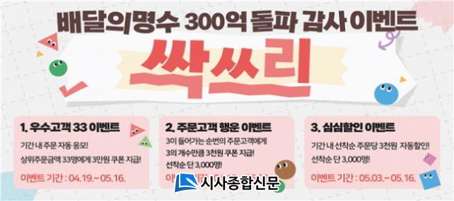 À̹ø À̺¥Æ®´Â ¿ì¼ö°í°´ 33À̺¥Æ®, ÁÖ¹®°í°´ Çà¿î À̺¥Æ®, ½É½ÉÇÒÀÎ À̺¥Æ® µî ´Ù¾çÇÏ°Ô ±¸¼ºµÇ¾î ÀÖÀ¸¸ç ÀÌ ±â°£ µ¿¾È ¹è´ÞÀÇ ¸í¼ö¸¦ ÅëÇØ ÁÖ¹®ÇÑ °í°´Àº ÀÚµ¿À¸·Î ÀÀ¸ðµÇ¸ç ÃÖ´ë 3¸¸¿øÀÇ ÇÒÀÎÄíÆù ÇýÅÃÀ» ¹ÞÀ» ¼ö ÀÖ´Ù.