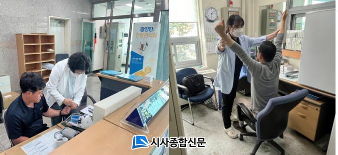 ±¤¾çÇ× °Ç°°ü¸®½ÇÀº ÆòÀÏ 9½ÃºÎÅÍ 17½Ã±îÁö(¹°¸®Ä¡·á½ÇÀº 12½ÃºÎÅÍ 16½Ã±îÁö) ¿î¿µÇϸç, ³ú½ÉÇ÷°ü°è ¹× ±Ù°ñ°Ý°è Áúȯ ¿¹¹æ°ü¸® ÇÁ·Î±×·¥, ½ÉÆó¼Ò»ý¼ú ±³À°, VR ¾ÈÀü±³À° ÇÁ·Î±×·¥ µîÀ» Á¦°øÇÑ´Ù.¶ÇÇÑ »ç¾÷ÀåÀ» ¹æ¹®ÇÏ¿© ³ú½ÉÇ÷°ü°è ¹× ±Ù°ñ°Ý°è Áúȯ »ó´ã, ÀÛ¾÷ Àü ¿îµ¿ ÇÁ·Î±×·¥ µîÀ» Á¦°øÇÏ´Â ÀÏ¸í ¡®Ã£¾Æ°¡´Â °Ç°°ü¸®½Ç¡¯µµ ¿î¿µÇϰí ÀÖ´Ù. ã¾Æ°¡´Â °Ç°°ü¸®½Ç ¼ºñ½º´Â ±¤¾çÇ× ¼ÒÀçÀÇ »ç¾÷ÀåÀ̶ó¸é ÀüÈ(061-793-1253)¸¦ ÅëÇØ ½ÅûÇÒ ¼ö ÀÖ´Ù.
