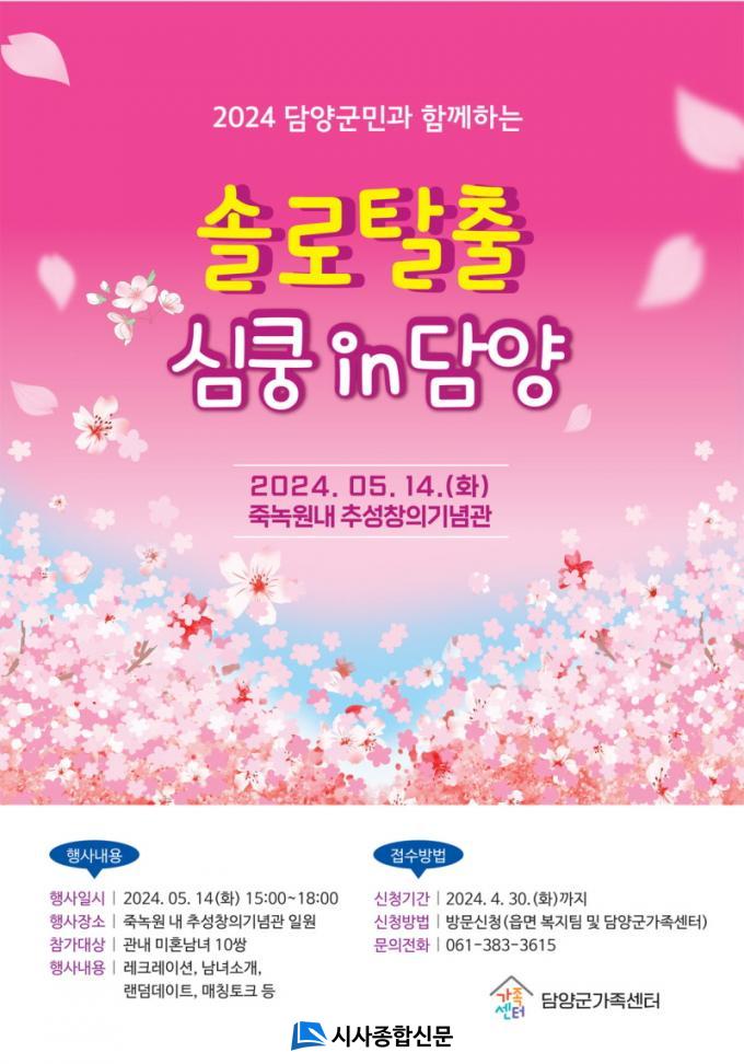 ù¸¸³²ÀÎ ¡®¼Ö·ÎÅ»Ãâ, ½ÉÄô in ´ã¾ç¡¯Àº 5¿ù 14ÀÏ ´ã¾ç ´ë³ª¹« ÃàÁ¦ ±â°£ Áß Á×³ì¿ø ÈĹ® Ãß¼ºÃ¢ÀDZâ³ä°ü ÀÏ¿ø¿¡¼ ÆîÃÄÁú ¿¹Á¤À¸·Î ÇöÀç °ü³» ¹ÌÈ¥³²³à¸¦ ´ë»óÀ¸·Î Âü°¡ÀÚ¸¦ ¸ðÁý ÁßÀÌ´Ù.