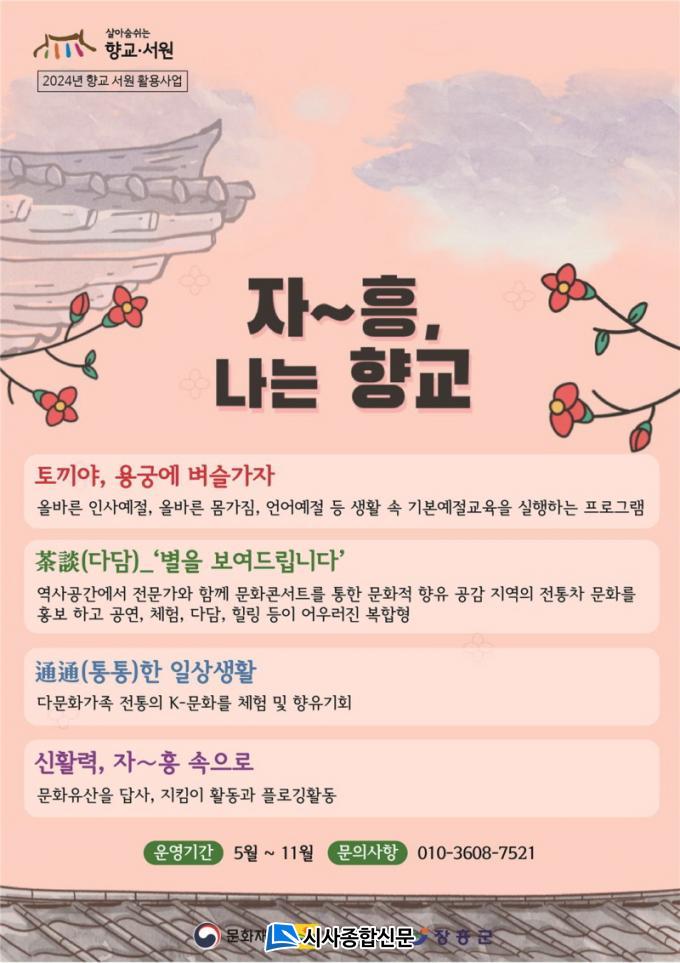±ºÀº À̹ø »ç¾÷À» ÅëÇØ ÀåÈïÇâ±³¸¦ ¹®È ÇâÀ¯ °ø°£À¸·Î Ȱ¿ëÇÔÀ¸·Î½á ¼±ºñ Á¤½Å¿Í Çѱ¹Àû ¹®ÇÐÀ» ǰÀº üÇè, ±³À°, °ø¿¬ µî ´Ù¾çÇÑ ÇÁ·Î±×·¥À» ÁøÇàÇÒ °èȹÀÌ´Ù.