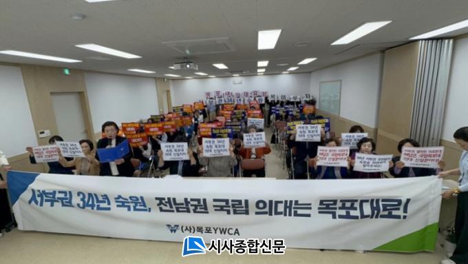 À̳¯ ¸ñÆ÷ YWCA ÀÓ¿ø°ú ȸ¿ø 70¿©¸íÀº ¡°ÀÇ·á±â°ü¿¡ ´ëÇÑ Á¢±Ù¼ºÀÌ ¶³¾îÁö°í °ø°øÀÇ·á ºÐ¾ß°¡ Ãë¾àÇÑ Àü³² ¼ºÎ±ÇÀÇ ¿¾ÇÇÑ ÀÇ·áÇö½ÇÀ» ¿Ü¸éÇÏÁö ¸»°í ±¹¸³¸ñÆ÷´ëÇб³¿¡ Àǰú´ëÇÐÀ» ½Å¼³Ç϶󡱴 ¼º¸í¼¸¦ ¹ßÇ¥ÇÏ¸é¼ ±¹¸³¸ñÆ÷´ëÇб³¿¡ Àǰú´ëÇÐÀ» ¼³¸³ÇÒ °ÍÀ» Ã˱¸Çß´Ù.