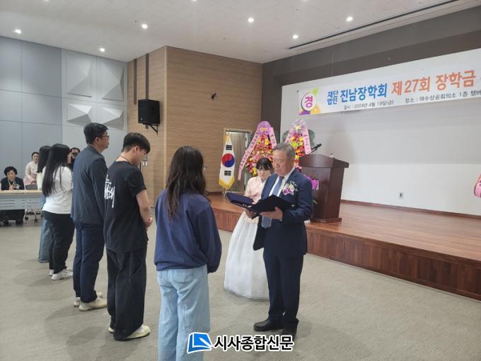 ÀåÇÐ±Ý Àü´Þ½ÄÀº 19ÀÏ ¿ÀÈÄ 3½Ã ¿©¼ö»ó°øÈ¸ÀÇ¼Ò Ã¨¹öȦ¿¡¼ Çлý°ú Çкθð µîÀÌ Âü¼®ÇÑ °¡¿îµ¥ °íµîÇлý 19¸í, ´ëÇлý 35¸í¿¡°Ô 4,450¸¸ ¿øÀÇ ÀåÇбÝÀÌ Àü´ÞµÆ´Ù.