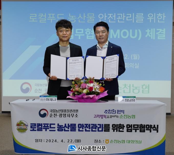 [½Ã»çÁ¾ÇսŹ® = Àå¹Î±Ô ±âÀÚ] ¼øÃµ³óÇù(Á¶ÇÕÀå ÃÖ³²ÈÞ)°ú ±¹¸³³ó»ê¹°Ç°Áú°ü¸®¿ø ¼øÃµ‧±¤¾ç»ç¹«¼Ò(¼ÒÀå ÇãÀç±Ô)´Â 4¿ù22ÀÏ(¿ù) ¼øÃµ³óÇù º»Á¡ ´ëȸÀǽǿ¡¼ ·ÎÄÃǪµå ³ó»ê¹°ÀÇ ¾ÈÀü¼ºÀ» È¿À²ÀûÀ¸·Î °ü¸®Çϱâ À§ÇÏ¿© ¾÷¹«Çù¾à(MOU) ü°á½ÄÀ» °¡Á³´Ù.