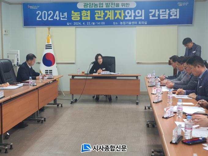 ³óÇù °ü°èÀÚ¿ÍÀÇ °£´ãȸ¿¡¼´Â ¡ã±¹¸³³ó»ê¹°Ç°Áú°ü¸®¿ø ±¤¾ç»ç¹«¼Ò ¼³Ä¡ ¼¸í¿îµ¿ µ¿Âü ¹× È«º¸ ¡ã³óÃÌÀÏ¼Õ ºÎÁ· ÇØ¼Ò¸¦ À§ÇÑ ³óÃÌÀηÂÁß°³¼¾ÅÍ ¿î¿µ ¡ãÅëÇÕ¸¶ÄÉÆÃ ¹× »êÁöÀ¯Åë Ȱ¼ºÈ Áö¿ø ¡ã¹Ì»ý¹° Ȱ¿ë ¸Å½ÇÅðºñ »ý»êÀ» À§ÇÑ ¸Å½Ç ¼ö±Þ ¹æ¾È ¡ã³ó»ê¹°¾ÈÀüºÐ¼®½Ç ·ÎÄÃǪµå ÃâÇÏ ³ó°¡ ÀÌ¿ë ÇùÁ¶ ¡ã±¤¾ç½Ò ÆÇ¸Å Ȱ¼ºÈ Áö¿øÀ» Æ÷ÇÔÇÑ º¸Á¶»ç¾÷ Àû±â ÃßÁø µî¿¡ ´ëÇØ ¼³¸íÇϰí ÀǰßÀ» ûÃëÇß´Ù.