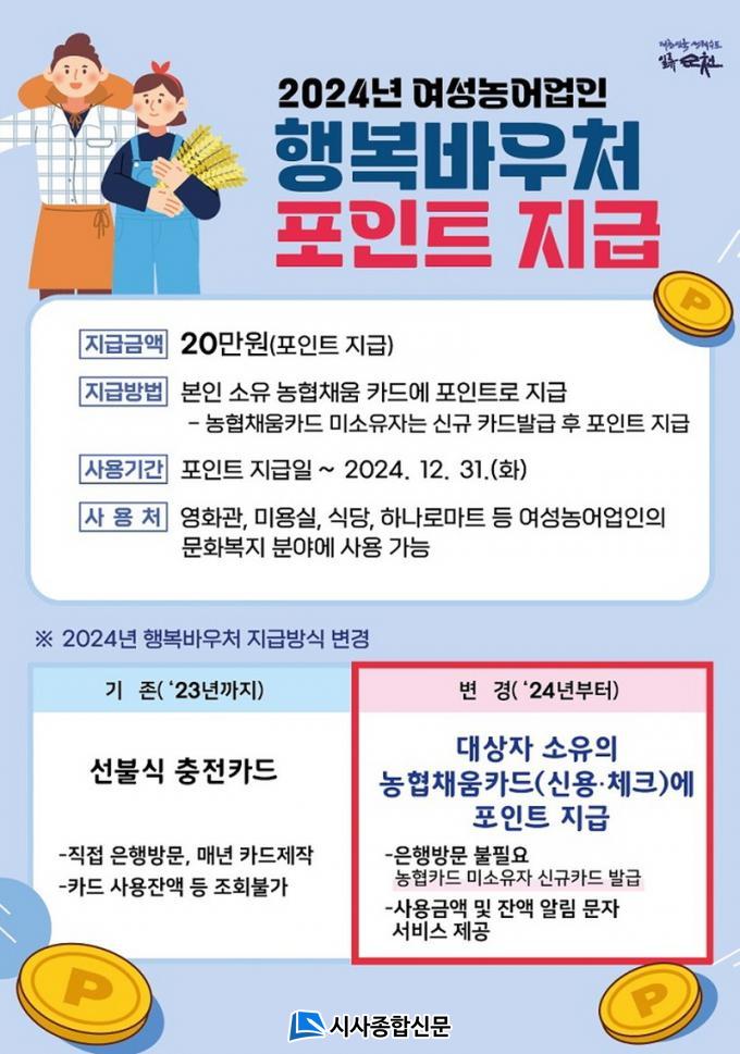 ³óÇùÄ«µå¸¦ ¼ÒÀ¯ÇÏÁö ¾ÊÀº ´ë»óÀÚ´Â Ä«µå¸¦ ½Å±Ô ¹ß±Þ¹ÞÀ¸¸é 5¿ù Áß Æ÷ÀÎÆ®¸¦ Áö±Þ¹ÞÀ» ¼ö ÀÖ´Ù. ¿©¼º³ó¾î¾÷ÀÎ Çູ¹Ù¿ìó »ç¾÷Àº ¹®È ¿©°ÇÀÌ »ó´ëÀûÀ¸·Î ¿¾ÇÇÑ ³ó¾îÃÌ Áö¿ª ¿©¼º³ó¾î¾÷Àο¡°Ô ´Ù¾çÇÑ ¹®È»ýȰÀ» Áñ±æ ¼ö ÀÖµµ·Ï 1ÀÎ´ç ¿¬ 20¸¸¿øÀÇ Çູ¹Ù¿ìó Æ÷ÀÎÆ®¸¦ Áö±ÞÇÏ´Â »ç¾÷À¸·Î ¿ÃÇØ 2¿ù ¸»±îÁö ½ÅûÀ» ¹Þ¾Æ ´ë»óÀÚ¸¦ ¼±Á¤Çß´Ù.