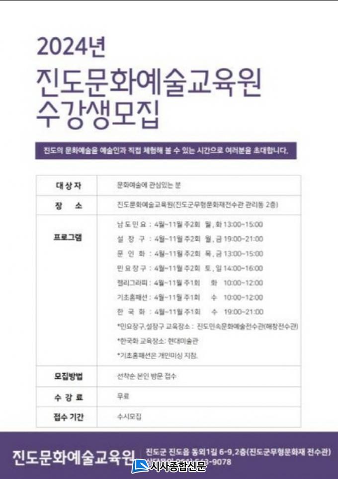 | Áøµµ¹®È¿¹¼ú±³À°¿ø, 2024³â ¼ö°»ý ¸ðÁý ÁøµµÀÇ ¹®È¿¹¼úÀ» Á÷Á¢ üÇèÇØ º¸¼¼¿ä! |