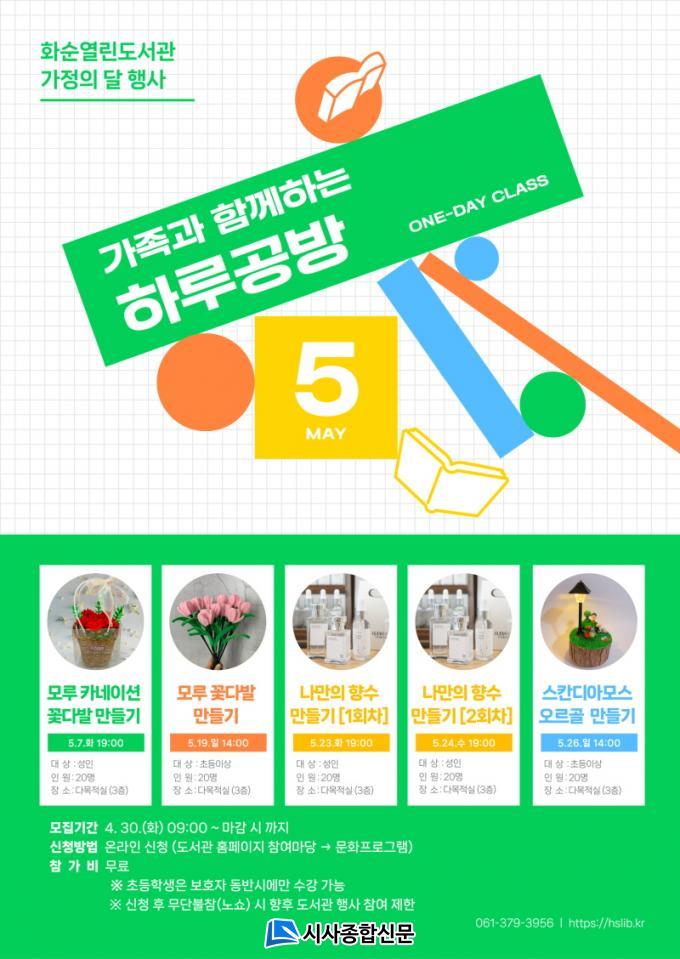 ¡°°¡Á·°ú ÇÔ²²ÇÏ´Â ÇÏ·ç °ø¹æ¡± ¼ö¾÷Àº 4¿ù 30ÀÏ(È)ºÎÅÍ È¼ø¿¸°µµ¼°ü ȨÆäÀÌÁö(¹®ÈÇà»ç¡æ¹®ÈÇÁ·Î±×·¥)¿¡¼ ½ÅûÇÒ ¼ö ÀÖÀ¸¸ç Âü°¡ºñ´Â ¹«·áÀÌ´Ù.