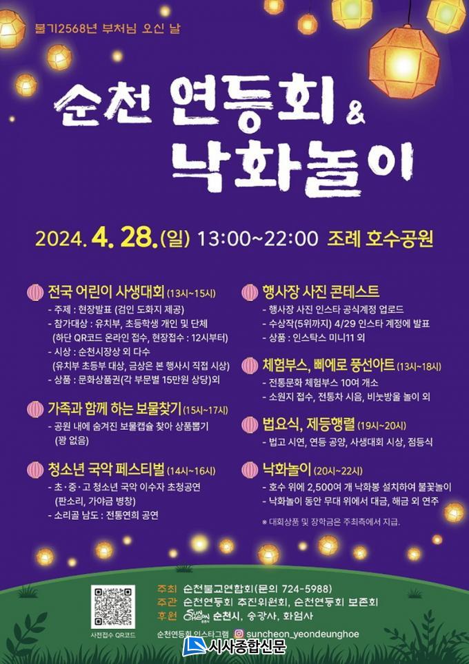 ÀÚ¼¼ÇÑ »çÇ×Àº ¼øÃµºÒ±³»ç¾Ï¿¬ÇÕȸ(061-724-5988)¿¡¼ ¾È³»¸¦ ¹ÞÀ» ¼ö ÀÖ´Ù. ¶ÇÇÑ ¿¬µîȸ ÀνºÅ¸±×·¥(suncheon_yeondeunghoe)À» ÅëÇØ Çà»ç Á¤º¸¸¦ È®ÀÎÇÒ ¼ö ÀÖ´Ù.