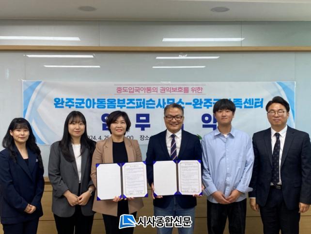 [½Ã»çÁ¾ÇսŹ® = ±è¿¬Èñ ±âÀÚ] ¿ÏÁÖ±º¾Æµ¿¿ÈºÎÁîÆÛ½¼»ç¹«¼Ò(»ç¹«¼ÒÀå ÃÖÁ¤¼³)¿Í ¿ÏÁÖ±º°¡Á·¼¾ÅÍ(¼¾ÅÍÀå ±èÁ¤Àº)°¡ ¡®ÁßµµÀÔ±¹ ¾Æµ¿ÀÇ ±ÇÀͺ¸È£¸¦ À§ÇÑ ¾÷¹«Çù¾à¡¯À» ü°áÇß´Ù.