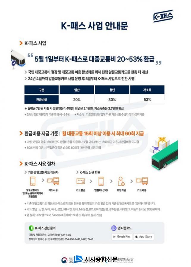 ¡®K-ÆÐ½º¡¯´Â ¿ù 15ȸ ÀÌ»ó ÃÖ´ë 60ȸ±îÁö ´ëÁß±³ÅëÀ» ÀÌ¿ëÇÒ °æ¿ì ±³Åëºñ ÁöÃ⠱ݾ×ÀÇ ÀÏÁ¤ ºñÀ²(ÀϹÝÀÎ 20%, û³âÃþ 30%, Àú¼ÒµæÃþ 53%)À» Àû¸³ÇØ ´ÙÀ½ ´Þ¿¡ µ¹·Á¹ÞÀ» ¼ö ÀÖ´Â ±³ÅëÄ«µåÀÌ´Ù.