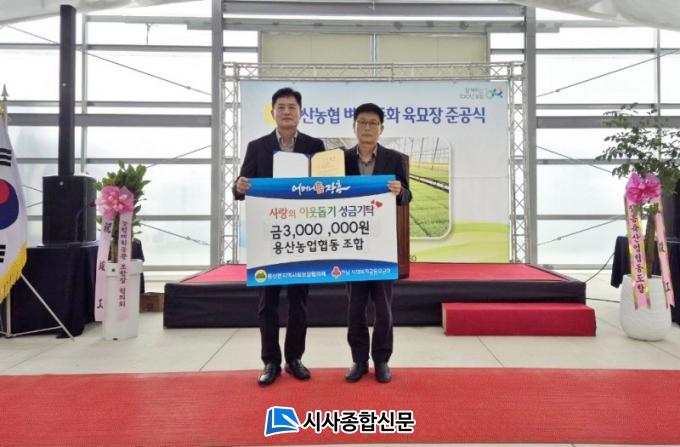 29ÀÏ ¿ë»ê³ó¾÷Çùµ¿Á¶ÇÕ(¹Úöȯ Á¶ÇÕÀå)Àº ³ó¾÷ÀÎÀÇ ÀϼպÎÁ· ÇØ°á ¹× ³ó°¡ ÆíÀÍÀ» Á¦°øÇϱâ À§ÇØ º ÀÚµ¿È À°¹¦Àå Áذø½ÄÀ» °³ÃÖÇÏ°í ¾î·Á¿î ÀÌ¿ôÀ» µ½´Â µ¥ ½á´Þ¶ó¸ç ¼º±Ý 300¸¸ ¿øÀ» ±âŹÇß´Ù.