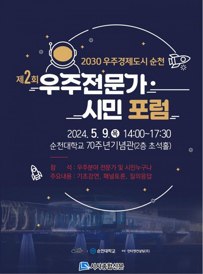 ¼øÃµ½Ã Ç×°ø¿ìÁÖ»ê¾÷ Á¤Ã¥À§¿ø, Àü¹®°¡, ±â¾÷, °ø¹«¿ø, ´ëÇб³, ½Ã¹Î µî °¢ ºÐ¾ß¿¡¼ Âü¼®ÇÏ´Â À̹ø Æ÷·³Àº ¿ìÁÖ °ÅÁ¡µµ½Ã·Î µµ¾à ÁßÀÎ ¼øÃµ½Ã°¡ ¿ìÁÖ»ê¾÷À» ¾î¶»°Ô À°¼ºÇØ¾ß Çϴ°¡¿¡ ´ëÇÑ ÇâÈÄ ºñÀüÀ» Á¤¸³Çϱâ À§ÇÑ ±âȹ ÇÁ·Î±×·¥ÀÌ´Ù.
