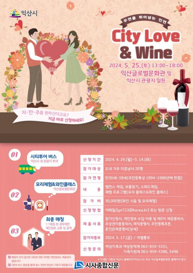 | ÀÍ»ê½Ã, '½ÃƼ·¯ºê ¾Ø ¿ÍÀÎ(City Love & Wine) ¿î¿µ ÀÍ»ê ½ÃÆ¼Åõ¾î ¹ö½º Ÿ°í ûÃá ³²³à ¸¸³²ÀÇ Àå ²ÉÇÇ¿î´Ù |