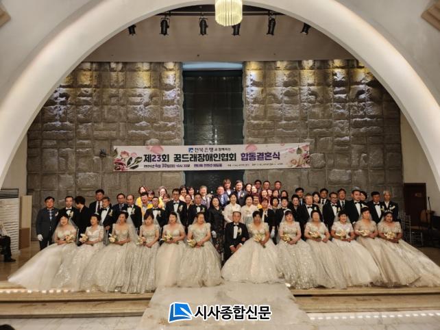 [½Ã»çÁ¾ÇսŹ® = ±è¿¬Èñ ±âÀÚ] Àå¾ÖÀΡ¤Ãë¾à°èÃþÀ» À§ÇØ ´Ù¾çÇÑ »çȸ°øÇå Ȱµ¿À» ÆîÄ¡°í ÀÖ´Â (»ç)²Þµå·¡Àå¾ÖÀÎÇùȸ°¡ °æÁ¦Àû ¾î·Á¿ò µîÀ¸·Î °áÈ¥½ÄÀ» ÇÏÁö ¸øÇÑ Àå¾ÖÀÎ ºÎºÎ¸¦ À§ÇØ Á¦23ȸ ÇÕµ¿°áÈ¥½ÄÀ» ÀüÁÖ¿£Å¸¿ö ÄÁº¥¼Ç ¿þµùȦ¿¡¼ ¿¾ú´Ù.
