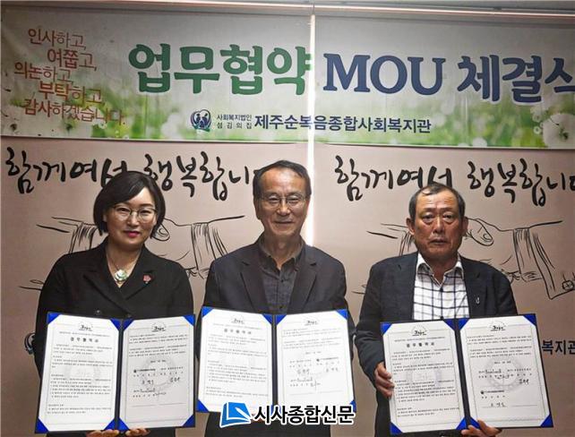 [½Ã»çÁ¾ÇսŹ® = °í¼º¹Î ±âÀÚ] Áö³ 4¾ó26ÀÏ(±Ý) Á¦ÁÖ¼øº¹À½Á¾ÇÕ»çȸº¹Áö°ü(°üÀå Á¶¿µ¼÷)Àº ºÀ°³µ¿Áֹμ¾ÅÍ(µ¿Àå ±è¹®±Ô), ºÀ°³µ¿Áö¿ª»çȸº¸ÀåÇùÀÇü(À§¿øÀå ±èÁßȯ)¿Í ¾÷¹«Çù¾àÀ» ü°áÇÏ¿´´Ù.