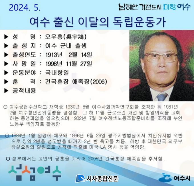 ¡®¿À¿ìÈ«(çïéÔûø)¼±»ý¡¯Àº ¿©¼ö°ø¸³¼ö»êÇб³ ÀçÇÐÁß 1930³â 8¿ù ¿©¼ö»çȸ°úÇבּ¸È¸¸¦ Á¶Á÷ÇÑ µÚ 1931³â 2¿ù ¿©¼öû³âÀüÀ§µ¿¸ÍÀ» °á¼ºÇß´Ù. ±× ÇØ 11¿ù ±Ù·ÎÁ¶°Ç °³¼± ¹× Ç×ÀÏÀǽÄÀ» °íÃëÇÏ´Â µ¿¸ÍÆÄ¾÷À» ÀÏÀ¸Ä×À¸¸ç, 1932³â 7¿ù ¿©¼öÀû»ö³ëµ¿Á¶ÇÕÁغñȸ¸¦ Á¶Á÷ÇØ ºÎÀγ뵿ºÎ Ã¥ÀÓÀڷΠȰµ¿Çß´Ù.