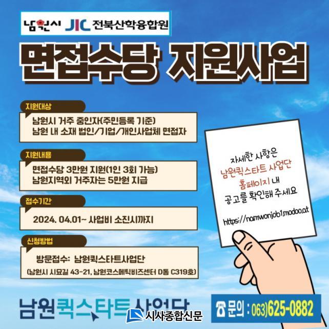 ½Åû ´ë»óÀº Áֹεî·Ï ÁÖ¼ÒÁö¿Í °ü°è¾øÀÌ ³²¿ø½Ã °ü³» »ç¾÷Àå¿¡ Ãë¾÷ÇϰíÀÚ ÇÏ´Â 19¼¼ ÀÌ»ó ±¸Á÷ÀÚ°¡ ÇØ´çµÈ´Ù. Ãë¾÷À» Èñ¸ÁÇÏ´Â ¹ýÀÎ, ±â¾÷, °³Àλç¾÷üÀÇ ¸éÁ¢ Àü ³²¿øÄü½ºÅ¸Æ® »ç¾÷´ÜÀ» ÅëÇÑ Ãë¾÷ »ó´ã ÈÄ ¾Ë¼±, À̷¼ ÄÁ¼³ÆÃ, µ¿Çà ¸éÁ¢ µîÀÇ ¼ºñ½ºµµ ÇÔ²² Á¦°ø¹ÞÀ» ¼ö ÀÖ´Ù.