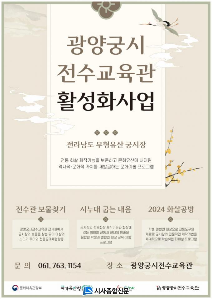 ±¤¾ç±Ã½ÃÀü¼ö±³À°°ü Ȱ¼ºÈ »ç¾÷Àº Àü¼ö±³À°°üÀÌ ¹«ÇüÀ¯»êÀ» ¹è¿ì´Â Áö¿ª ¹®È °ÅÁ¡À¸·Î ¹ßµ¸¿òÇϱâ À§ÇØ Àü¼ö°ü º¸¹°Ã£±â, ½Ã´©´ë ±Á´Â ³»À½, 2024 È»ì°ø¹æÀ¸·Î ¿î¿µµÈ´Ù.