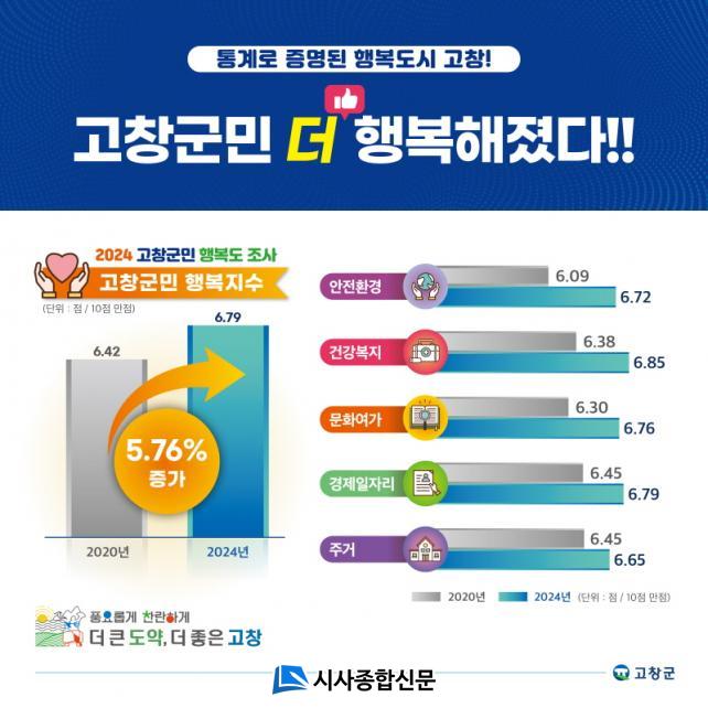 °¡Àå ÃÖ±Ù Á¶»çÇÑ 2020³â(6.42Á¡) ´ëºñ 5.76%°¡ »ó½ÂÇß°í, 7°³(¾ÈÀüȯ°æ, ÁÖ°üÀûÇູ, °Ç°º¹Áö, ¹®È¿©°¡, °æÁ¦ÀÏÀÚ¸®, ÁÖ°Å, °íⱺƯ¼ºÁöÇ¥) ¸ðµç ¿µ¿ª¿¡¼ Çູµµ°¡ »ó½ÂÇÑ Á¡ÀÌ ´«¿¡ ¶ç¾ú´Ù.