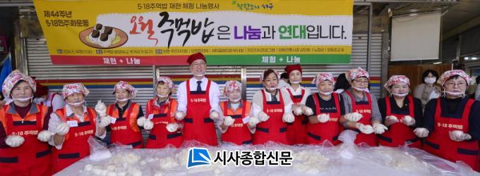 À̳¯ Çà»ç´Â 1980³â 5‧18 ´ç½Ã ½Ê½ÃÀÏ¹Ý ½Ò°ú µ·À» ¸ð¾Æ ½Ã¹Î±ºµé¿¡°Ô ÁÖ¸Ô¹äÀ» ¸¸µé¾î ÁÖ¸ç ÈûÀ» º¸ÅÉ´ø ¾çµ¿½ÃÀå »óÀεé, ¿À¿ù¿ª»ç ¹Ù·Î ¼¼¿ì±â¿Í Á¤½Å°è½Â¿¡ ¾ÕÀå¼°í ÀÖ´Â ¿À¿ù¾î¸Ó´ÏµéÀÌ ÇÔ²²ÇØ Àǹ̸¦ ´õÇß´Ù.