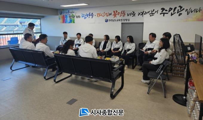 °æ±â °ü¶÷ ÈÄ ¸ñÆ÷Á¾ÇÕ°æ±âÀå Àü¶ó³²µµ±³À°Ã» »óȲ½ÇÀ» ã¾Æ ÀÓ¿øÁøµéÀ» °Ý·ÁÇÑ µÚ Àü³² Ư¼öÇб³ ±³Àå´Ü°ú °£´ãȸ¸¦ °®°í Çб³ ÇöÀåÀÇ Àå¾ÖüÀ° Çö¾È¿¡ ´ëÇÑ ÀǰßÀ» ³ª´³´Ù.