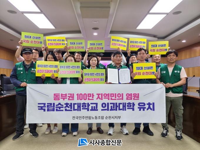 [½Ã»çÁ¾ÇսŹ® = Àå¹Î±Ô ±âÀÚ] ¼øÃµ °¢°è°¢Ãþ¿¡¼ ¼øÃµ´ëÇб³ Àǰú´ëÇÐ À¯Ä¡¸¦ À§ÇÑ È°µ¿ÀÌ È°¹ßÈ÷ ÀÌ·ïÁö´Â °¡¿îµ¥, ¼øÃµ½Ãû °ø¹«Á÷ ´ëÇ¥³ëÁ¶ÀÎ Àü±¹¹ÎÁÖ¿¬Çճ뵿Á¶ÇÕ ¼øÃµ½ÃÁöºÎ(ÁöºÎÀå ¹Ú¼øÁ¾)µµ ¼øÃµ´ë Àǰú´ëÇÐ À¯Ä¡ ¿°¿ø¿¡ µ¿ÂüÇß´Ù.
