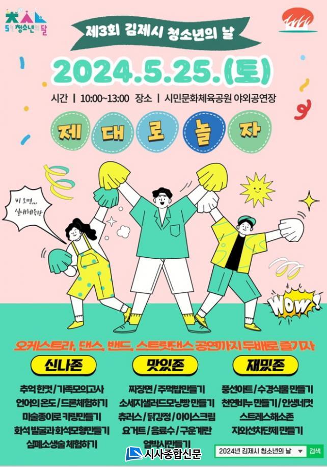 ±èÁ¦½Ã °ü°èÀÚ´Â ¡°Ã»¼Ò³â°ú ÇÔ²²ÇÏ´Â ±èÁ¦½Ã¸¦ ÁÖÁ¦·Î ¸ðµç û¼Ò³âÀÌ ÇÔ²² Âü¿©ÇØ Áñ±æ ¼ö ÀÖ´Â ÇູÇÑ Ã»¼Ò³âÀÇ ³¯ÀÌ µÇµµ·Ï ´Ù¾çÇÑ ÇÁ·Î±×·¥À» ÁغñÇÏ¿´À¸´Ï ¸¹Àº û¼Ò³âµéÀÇ Âü¿©¸¦ ¹Ù¶õ´Ù¡±°í ÀüÇß´Ù.
