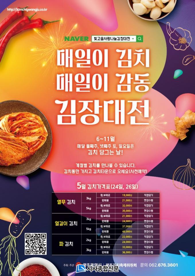 ±¤ÁÖ±¤¿ª½Ã(½ÃÀå °±âÁ¤)´Â 23ÀϺÎÅÍ 26ÀϱîÁö ±¤ÁÖ±èġŸ¿î ´Ù¸ñÀûüÇè°ü µî¿¡¼ ¡®¸ÅÀÏÀÌ ±èÄ¡! ¸ÅÀÏÀÌ °¨µ¿!¡¯À̶ó´Â ÁÖÁ¦·Î ¡®º½ ÇÞ±èÄ¡ »ç¶û³ª´® Çà»ç¡¯¸¦ ¿¬´Ù.
