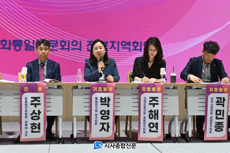 ÁÖ»óÇö Æ÷·³¿¬±¸À§¿øÀå(ÀüºÏ´ë ±³¼ö)ÀÌ ÁÂÀåÀ¸·Î ÁøÇàÇÑ Æ÷·³Àº ¹Ú¿µÀÚ ÅëÀÏ¿¬±¸¿ø ¼±ÀÓ¿¬±¸À§¿øÀÇ ¹ßÁ¦¿Í Áö¿ªÀÇ ÀÚ¹®À§¿ø, Àü¹®°¡µéÀÌ ÁöÁ¤Åä·Ð¿¡ Âü¿©ÇÏ¿© ÅëÀÏ․´ëºÏÁ¤Ã¥ ÃßÁø ¹æÇâ¿¡ °üÇÑ ´Ù¾çÇÑ ÀǰßÀ» Á¦½ÃÇß´Ù.