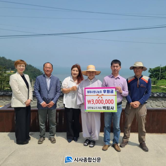 [½Ã»çÁ¾ÇսŹ® = ¿À½ÂÅà ±âÀÚ] ¹«¾È±º ÇØÁ¦¸é ¹é¸²»ç(ÁÖÁö Áö¿õ½º´Ô)´Â Áö³ 21ÀÏ ÇØÁ¦¸é ÀÚ¿øºÀ»ç´Üü ¡®ÇØÁ¦»ç¶û³ª´®È¸¡¯¿¡ Áö¿ª»çȸ ³» ¼Ò¿Ü°èÃþ¿¡ »ç¿ëÇØ ´Þ¶ó¸ç ¼º±Ý 300¸¸ ¿øÀ» ±âŹÇß´Ù.