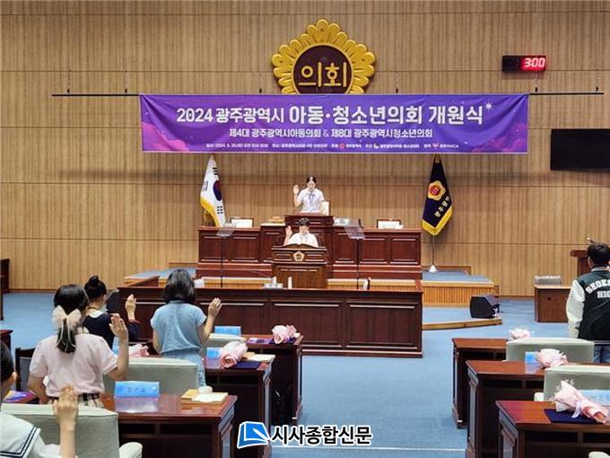 À̳¯ °³¿ø½ÄÀº ¾Æµ¿ÀÇ¿ø 16¸í, û¼Ò³âÀÇ¿ø 13¸í, ¿À¿µ°É ¿©¼º°¡Á·±¹Àå, À̸í³ë¡¤±è¿ëÀÓ¡¤¹ÚÇʼø¡¤Àӹ̶õ¡¤½ÉöÀÇ ±¤ÁÖ½ÃÀÇ¿ø, ±¤Áֽᤱ³À°Ã» ¹× ¾Æµ¿¡¤Ã»¼Ò³â °ü°èÀÚ, ½Ã¹ÎÀÌ Âü¼®ÇÑ °¡¿îµ¥ ¡ã±¤ÁÖ±¤¿ª½Ã¾Æµ¿¡¤Ã»¼Ò³âÀÇȸ ÃßÁø°æ°úº¸°í ¡ã¿À¿µ°É ¿©¼º°¡Á·±¹Àå, À̸í³ë¡¤±è¿ëÀÓ¡¤¹ÚÇʼø¡¤Àӹ̶õ¡¤½ÉöÀÇ ±¤ÁÖ½ÃÀÇ¿ø Ãà»ç ¡ãÁ¦4´ë ¾Æµ¿ÀÇȸ À§ÃËÀå ¹× ¹èÁö ¼ö¿© ¡ãÁ¦8´ë û¼Ò³âÀÇȸ ´ç¼±Áõ ¹× ¹èÁö ¼ö¿© ¡ãÁ¦8´ë ±¤ÁÖ±¤¿ª½Ãû¼Ò³âÀÇȸ °³¿ø»ç ¡ãÀÇ¿ø ¼±¼¹® ³¶µ¶ ¡ã¾Æµ¿¡¤Ã»¼Ò³âÀÇȸ°¡ ¹Ù¶õ´Ù. ¡ãÁ¦8´ë ±¤ÁÖ±¤¿ª½Ãû¼Ò³âÀÇȸ Æóȸ»ç µîÀÇ ¼øÀ¸·Î ÁøÇàµÇ¾ú´Ù.