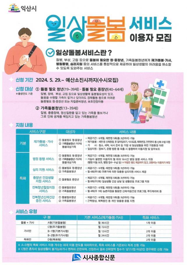 ÀÍ»ê½Ã´Â ¿À´Â 29ÀϺÎÅÍ µ¹º½ÇÊ¿ä û¡¤ÁßÀå³â°ú °¡Á·µ¹º½Ã»³âÀ» ´ë»óÀ¸·Î Àϻ󵹺½ ¼ºñ½º¸¦ Áö¿øÇÑ´Ù.
