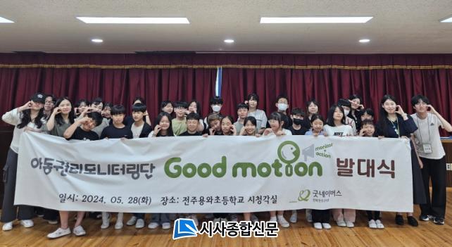 ±Â³×À̹ö½º ¾Æµ¿±Ç¸®¸ð´ÏÅ͸µ´Ü ±Â¸ð¼Ç(Good Motion)Àº ¿ÃÇØ ÀüÁÖ¿ë¿ÍÃʵîÇб³ Çлý 23¸íÀ» ¼±¹ßÇß´Ù, ¹ß´ë½ÄÀº ¾Æµ¿±Ç¸®¸ð´ÏÅ͸µ´Ü¿ø 23¸í, ¸àÅä 7¸í, ÀüÁÖ¿ë¿ÍÃʵîÇб³ °ü°èÀÚ 3¸í, ±Â³×À̹ö½º ÀüºÏÀüÁÖ2ÁöºÎ Á÷¿ø 4¸íÀÌ ÇÔ²² Âü¼®ÇÑ °¡¿îµ¥ ¾Æµ¿±Ç¸®¸ð´ÏÅ͸µ´Ü Ȱµ¿ ¾È³», ÀÓ¸íÀå Àü´Þ, ¾Æµ¿±Ç¸® ±âº»±³À°, Ȱµ¿ ÁÖÁ¦ ¾È³», ¼±¼¹® ÀÛ¼º ¼øÀ¸·Î ÁøÇàµÆ´Ù.