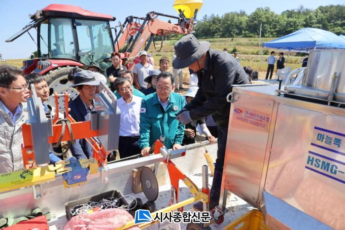 ¸íÇö°ü ±º¼ö¸¦ ºñ·ÔÇØ ÇØ³²±º¸¶´Ã»ý»êÀÚÇùȸ ȸ¿ø µî 50¿©¸íÀÌ Âü¼®ÇÑ °¡¿îµ¥ ¿¸° ¿¬½Ãȸ¿¡¼´Â ½Â¿ë°ü¸®±â, ºÎÂøÇü ¼öÈ®±â µîÀ» ÀÌ¿ëÇÑ ¸¶´Ã ¼öÈ® ±â°èÈ ÀÛ¾÷ ¿¬½Ãȸ¸¦ °¡Á³´Ù.