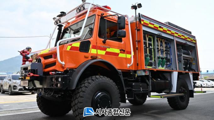 ÇèÁöÆßÇÁÂ÷´Â ¹° 3,300L¸¦ ÀûÀçÇÒ ¼ö ÀÖ°í, »êºÒÁøÈ¿ë °í¾Ð ÆßÇÁ¡¤°í¾Ð ¹æ¼ö È£½º¸±ÀÌ ÀåÂø‰çÀ¸¸ç, °í¾Ð ¹æ¼ö È£½º¸±Àº 50m, ÀÏ¹Ý È£½º¸±Àº 200m¿¡¼ ÃÖ´ë 300m±îÁö ¿¬ÀåÇÏ¿© »ç¿ë °¡´ÉÇϸç, ÀÚµ¿È£½º°¨±è ±â´ÉÀÌ ÀÖ´Ù. ƯÀÌÇϰԵµ ÁÖÇà Áß¿¡ PTO¸¦ ¿¬°áÇÏ¿© ¹æ¼ö°¡ °¡´ÉÇϰí, ¼ö½É 1.2m±îÁö ÁÖÇàÀÌ °¡´ÉÇÏ´Ù. ´ëÇü»êºÒ ¹æ¾î¼± ±¸Ãà ¹× ÈÀç Áø¾Ð Ȱµ¿¿¡ È¿°úÀûÀÏ °ÍÀ¸·Î ¿¹»óµÈ´Ù.