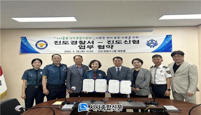 À̳¯ Çù¾à½Ä¿¡´Â ¹Ú¹Ì¿µ Áøµµ°æÂû¼ÀåÀ» ºñ·ÔÇÏ¿© °æÂû¼ °¢ °ú°èÀå ¹× Áøµµ½ÅÇù ±èµ¿´ö ÀÌ»çÀå µî Áøµµ½ÅÇù ÀÓ¿ø 3¸íÀÌ Âü¼®ÇÑ °¡¿îµ¥ º¹Áö »ç°¢Áö´ë¿¡ ³õÀÎ »çȸÀû ¾àÀÚ¸¦ À§ÇÑ Ä§±¸·ù ¹× ³¹æºñ Áö¿ø µîÀ» ÅëÇÑ º¸È£¡¤ Áö¿øÀº ¹°·Ð Áö¿ª °øµ¿Ã¼ Ä¡¾È Çù·ÂÀÇ ÁÖü·Î¼ ¾ÈÀüÇÑ Áøµµ¸¸µé±â À§ÇØ »óÈ£°£¿¡ Çù·ÂÀ» ´ÙÁüÇß´Ù.
