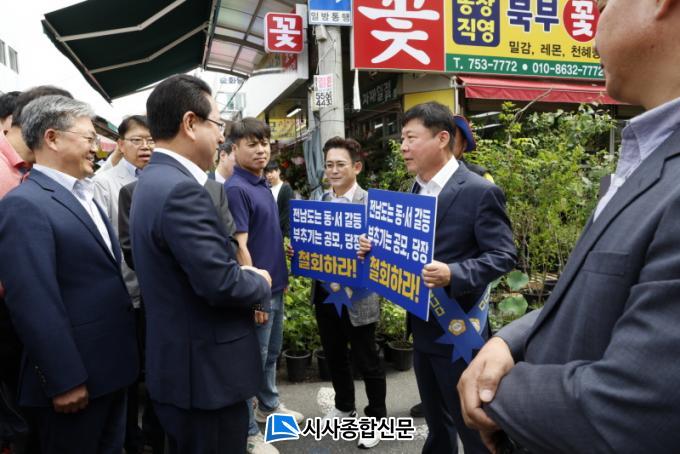±è¿µ·Ï µµÁö»ç¸¦ ¸¶ÁÖÇÑ Á¤º´È¸ ÀÇÀåÀº ¡®Àü³²µµ´Â µ¿¡¤¼ °¥µî ºÎÃß±â´Â °ø¸ð, ´çÀå öȸÇ϶󡯴 ¹®±¸°¡ ÀûÈù ÇÇÄÏÀ» µé°í ¡°Àü³² µ¿ºÎ±Ç ´ë´Ù¼ö ÁֹεéÀº Àü¶ó³²µµ °ø¸ð¸¦ ºÒ°øÁ¤ÇÏ´Ù°í »ý°¢Çϱ⿡ Á÷Á¢ °Å¸®¿¡ ³ª¿Ô´Ù¡±°í ¸»Çϸç, °ø¸ð öȸ¸¦ Á÷Á¢ ¿äûÇß´Ù.