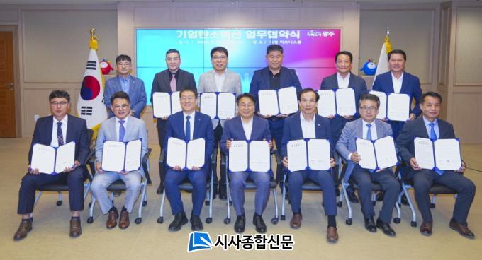 ±¤ÁÖ±¤¿ª½Ã(½ÃÀå °±âÁ¤)´Â 30ÀÏ ½Ãû ºñÁî´Ï½º·ë¿¡¼ Áß¼Ò¡¤Áß°ß±â¾÷ 12°³»ç, Çѱ¹¿¡³ÊÁö°ø´Ü°ú ¡®±¤ÁÖ 2045 ź¼ÒÁ߸³À» À§ÇÑ ±â¾÷ź¼Ò¾×¼Ç ¾÷¹«Çù¾à¡¯À» ü°áÇß´Ù.