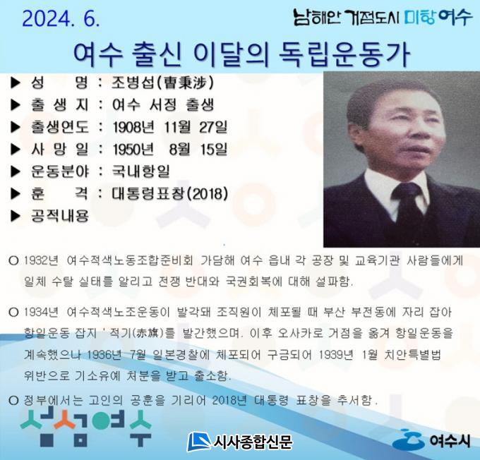 ¡®Á¶º´¼·(ðÆÜ¼àï)¼±»ý¡¯Àº 1932³â ¿©¼öÀû»ö³ëµ¿Á¶ÇÕÁغñȸ¿¡ °¡´ãÇØ ¿©¼ö À¾³» °¢ °øÀå °ø°ø´Üü ±³À°±â°ü »ç¶÷µé¿¡°Ô ÀÏÁ¦ ¼öÅ» ½ÇŸ¦ ¾Ë¸®°í ÀüÀï ¹Ý´ë¿Í ±¹±Ç ȸº¹À» ¼³ÆÄÇß´Ù.