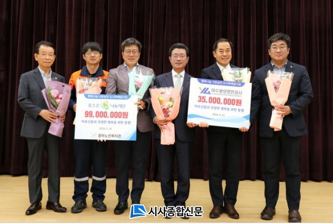 À̳¯ Àü´Þ½ÄÀº ±¤¾ç½Ã Á¤ÀÎÈ ½ÃÀå, Æ÷½ºÄÚ ±¤¾çÁ¦Ã¶¼Ò Á¤»ó°æ ºÎ¼ÒÀåÀ» ´ë½ÅÇØ ±èÅÂÇü ÇàÁ¤¼·¿Ü ±×·ìÀåÀÌ, ¿©¼ö±¤¾çÇ׸¸°ø»ç ¹Ú¼ºÇö »çÀåÀ» ´ë½ÅÇØ ȲÇйü ºÎ»çÀåÀÌ, ±¤¾ç½Ã»ç¶û³ª´®º¹ÁöÀç´Ü ±èÀç°æ ÀÌ»çÀå, ³ëÀÎÀÏÀÚ¸® Âü¿©ÀÚ ¾î¸£½Å°ú ÀÚ¿øºÀ»çÀÚ µî ¾à 100¿© ¸íÀÌ Âü¼®Çß´Ù.