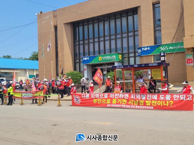 [½Ã»çÁ¾ÇսŹ® = ¿À½ÂÅà ±âÀÚ] Áö³ 3ÀÏ Çö°æ¸é Áö¿ª´ëÃ¥À§¿øÈ¸ ¹× »çȸ´Üü 100¿© ¸íÀÌ ¹«¾È³óÇù Çö°æÁöÁ¡ ¾Õ¿¡¼ ±¤ÁÖ½ÃÀÇ È«º¸ Ä·ÆäÀο¡ ¹Ý¹ßÇØ ±¤ÁÖ ±º °øÇ× ¹«¾È ÀÌÀü ¹Ý´ë¸¦ À§ÇÑ Áýȸ¸¦ °³ÃÖÇß´Ù.
