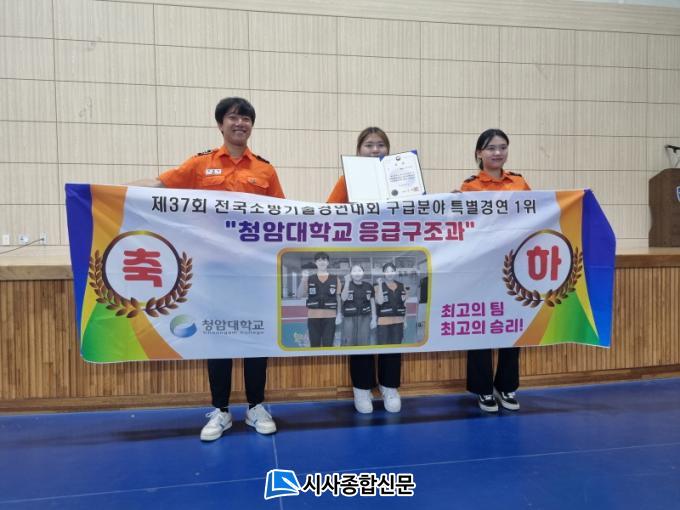 [½Ã»çÁ¾ÇսŹ® = ¿À½ÂÅà ±âÀÚ] û¾Ï´ëÇб³(ÃÑÀåÁ÷¹«´ëÇà ±è¼ºÈ«) ÀÀ±Þ±¸Á¶°ú(ÇаúÀå ¹®¼º¸ð)´Â °øÁֽà Áß¾Ó¼Ò¹æÇб³¿¡¼ ¿¸° ¡®Á¦37ȸ Àü±¹¼Ò¹æ±â¼ú°æ¿¬´ëȸ¡¯¿¡¼ ±¸±ÞºÐ¾ß Ưº°°æ¿¬¿¡¼ ¼Çö±Ô, ³²¼³Èñ, ±è¼ö¾Æ, ¹®¼º¸ð(Áöµµ±³¼ö)°¡ ÃâÀüÇØ 1À§¸¦ ¼ö»óÇÏ¿´´Ù°í ¹àÇû´Ù.