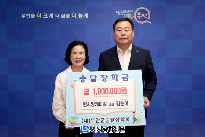 | ÇÑ»ç¶ûÄɹÌÄ® ±è¼øÀÌ ´ëÇ¥, ¹«¾È±º ½Â´ÞÀåÇÐ±Ý 100¸¸¿ø ±âŹ 2019³âºÎÅÍ ²ÙÁØÇÑ ÀåÇÐ±Ý ±âŹÀ¸·Î Áö¿ª ÀÎÀç ¾ç¼º¿¡ ±â¿© |