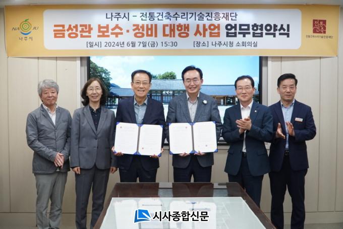 ³ªÁÖ½Ã(½ÃÀå À±º´ÅÂ)´Â Áö³ 7ÀÏ ±¹°¡À¯»êû(¿¾ ¹®ÈÀçû) »êÇÏ Æ¯¼ö¹ýÀÎÀÎ ÀüÅë°ÇÃà¼ö¸®±â¼úÁøÈïÀç´Ü(ÀÌ»çÀå ±èâÁØ)°ú ±Ý¼º°ü ÇØÃ¼º¸¼ö ÃßÁøÀ» À§ÇÑ ¾÷¹«Çù¾àÀ» ü°áÇß´Ù°í 10ÀÏ ¹àÇû´Ù.