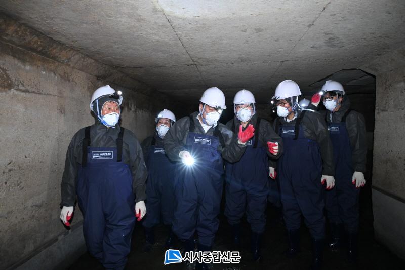 ±×´Â ÀÌ ÀÏȯ¿¡¼ À̳¯ ¿ÀÈÄ Á÷¿øµé°ú ÇÔ²² ¹é¿î±¤Àå ÁÖº¯ ÁöÇÏ Çϼö¾Ï°Å¿¡ ÁøÀÔ, Çϼö°ü·Î 522m ±¸°£À» µÑ·¯º¸¸ç ¸ð·¡ µî ÅðÀû¹°°ú ½Ã¼³ »óŸ¦ ÀÏÀÏÀÌ Á¡°ËÇß´Ù. ¶Ç °ü³» »ó½À ħ¼öÁö¿ª¿¡ ´ëÇÑ ´ëºñµµ öÀúÈ÷ ÇÒ °ÍÀ» Ưº° Áö½ÃÇß´Ù.