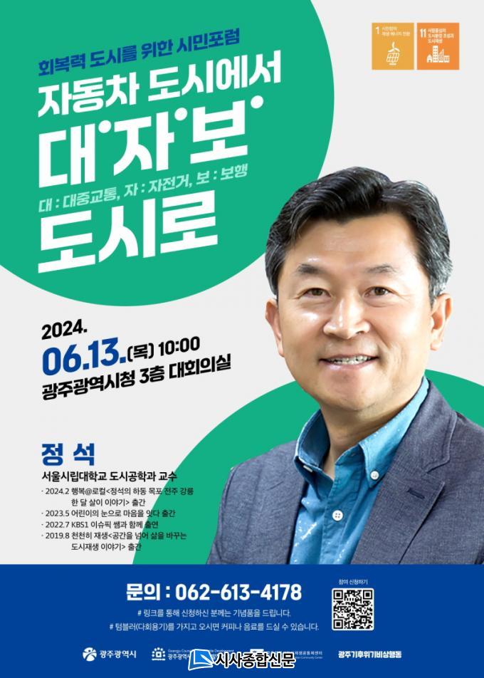 ±¤ÁÖ±¤¿ª½Ã(½ÃÀå °±âÁ¤)´Â ¿À´Â 13ÀÏ ¿ÀÀü 10½Ã ½Ãû ´ëȸÀǽǿ¡¼ µµ½ÃÀç»ý¡¤µµ½Ã¼³°è ¼®ÇÐ Á¤¼® ±³¼ö(¼¿ï½Ã¸³´ë µµ½Ã°øÇаú)¸¦ ÃʺùÇØ ¡®È¸º¹·Â µµ½Ã¸¦ À§ÇÑ ½Ã¹ÎÆ÷·³ ÀÚµ¿Â÷ µµ½Ã¿¡¼ ´ë¡¤ÀÚ¡¤º¸(´ëÁß±³Å롤ÀÚÀü°Å¡¤º¸Çà) µµ½Ã·Î¡¯¸¦ ÁÖÁ¦·Î Ưº°°¿¬À» °³ÃÖÇÑ´Ù.