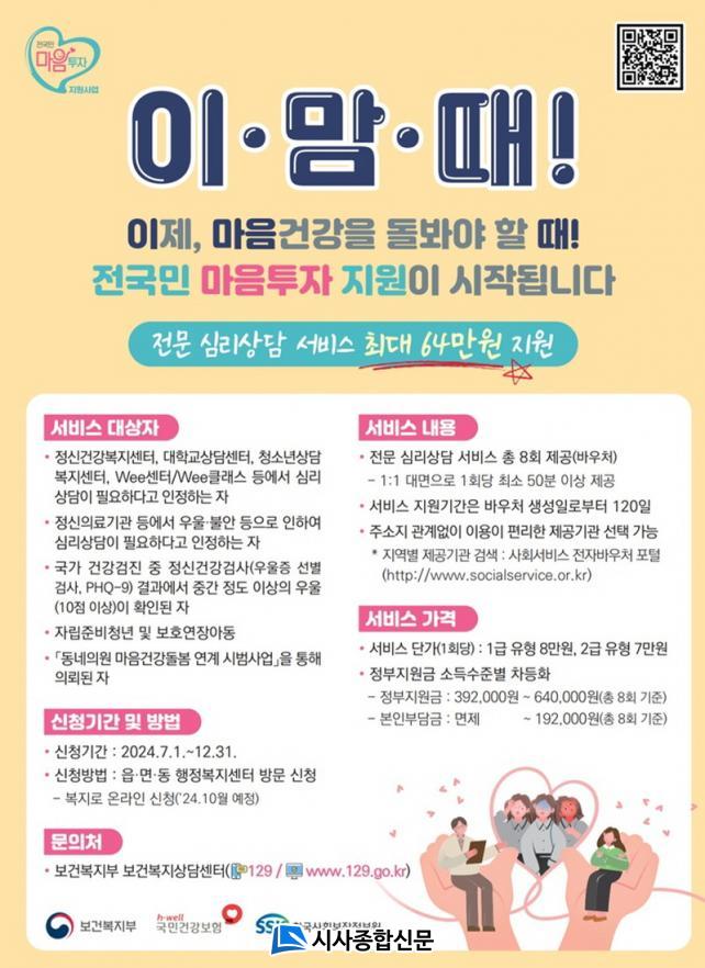 ½É¸®»ó´ã ¼ºñ½º Á¦°ø±â°üÀº Áö³ 3ÀϺÎÅÍ ¸ðÁý ÁßÀÌ¸ç ½Ã¼³, Àη ¹× ÀڰݱâÁØ µîÀ» °®Ãá ÁõºùÀڷḦ °üÇÒ º¸°Ç¼Ò¿¡ Á¦°ø±â°ü ´ëÇ¥ÀÚ°¡ Á÷Á¢ ¹æ¹® Á¢¼öÇÏ¸é µÈ´Ù. ÀÚ¼¼ÇÑ »çÇ×Àº ½Ãû ȨÆäÀÌÁö¿¡¼ È®ÀÎÇÒ ¼ö ÀÖ´Ù.