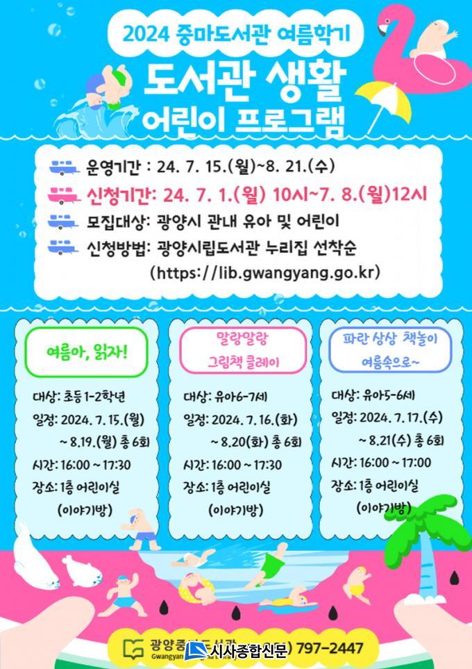 | ±¤¾çÁ߸¶µµ¼°ü, 2024 ¿©¸§Çб⠵µ¼°ü»ýȰ ¾î¸°ÀÌÇÁ·Î±×·¥ ¼ö°»ý ¸ðÁý 7¿ù 15ÀϺÎÅÍ 6ÁÖ µ¿¾È ¿¬·Éº° 3°³ °Á ¿î¿µ |